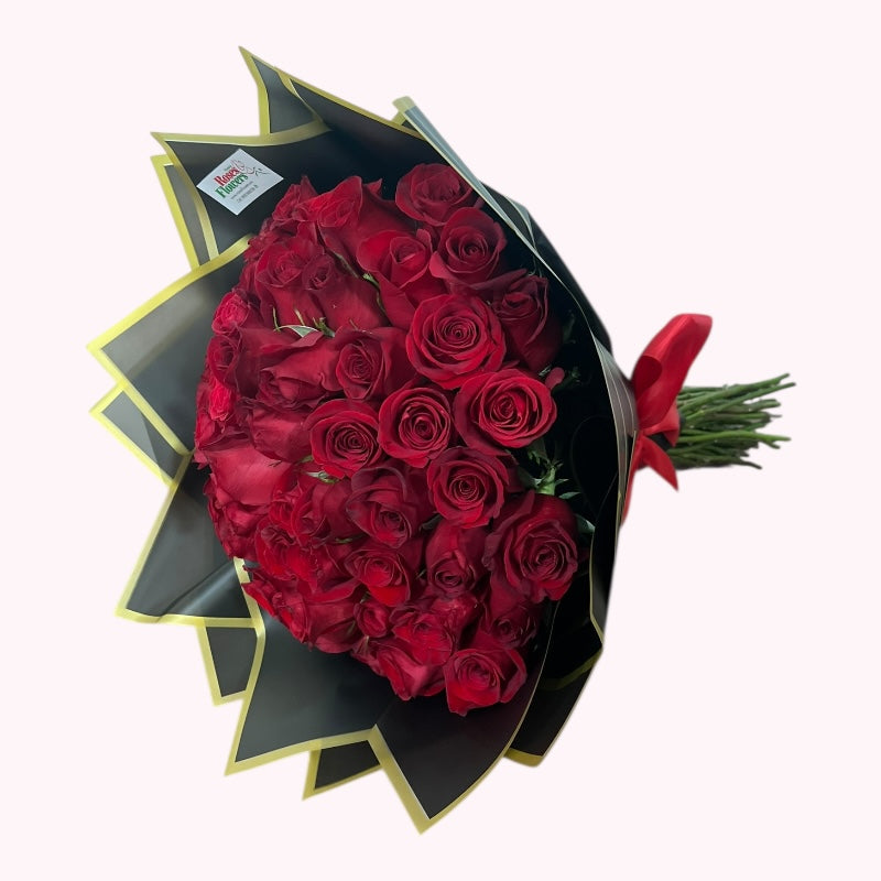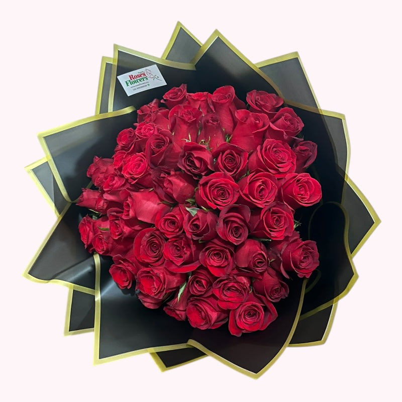Bouquet (Ramo) de 50 rosas rojas y decorado