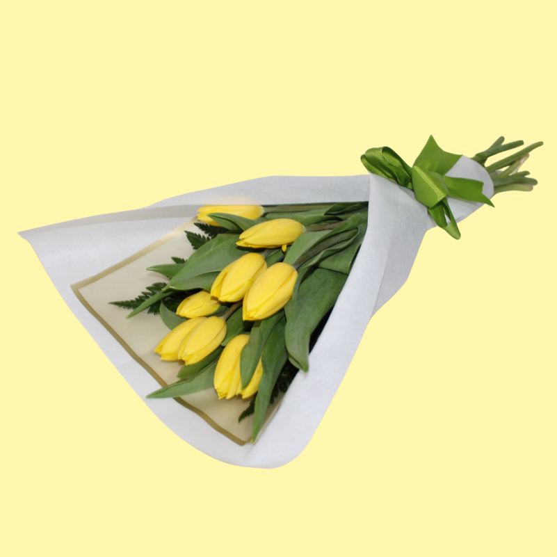 Elegante Bouquet (ramo) de 10 Tulipanes, follaje y decorado